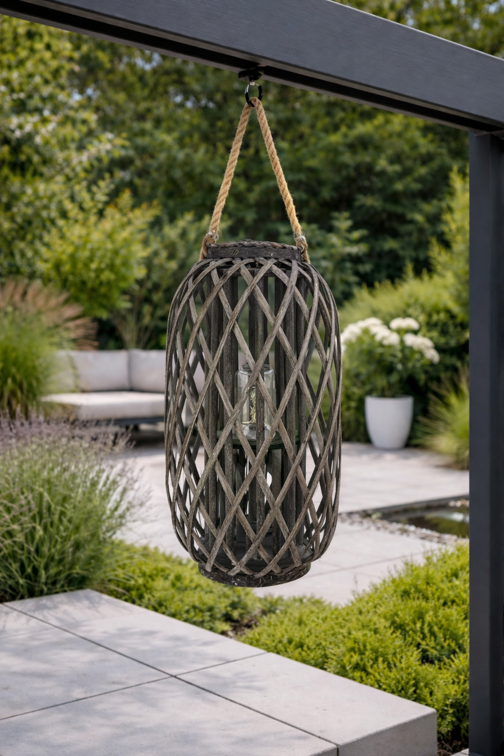 Measuring just the right size, this large lantern can be used inside or outside to create a stunning focal point. Pair it with other sizes from our collection for a layered look that will impress your guests. Don't miss out on the chance to enhance your living space with this beautiful contemporary lantern. It's more than just a lantern; it's a statement piece that reflects your unique style.